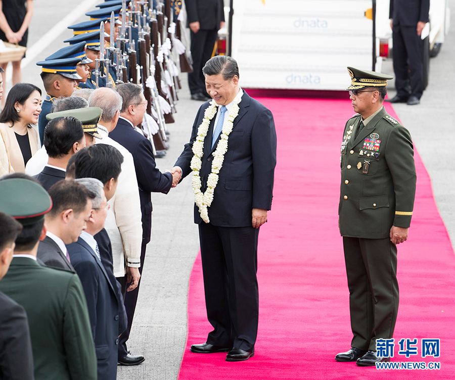 11月20日,國(guó)家主席習(xí)近平抵達(dá)馬尼拉,開始對(duì)菲律賓共和國(guó)進(jìn)行國(guó)事訪問。這是習(xí)近平在機(jī)場(chǎng)受到菲律賓政府高級(jí)官員熱情迎接。 新華社記者 黃敬文 攝