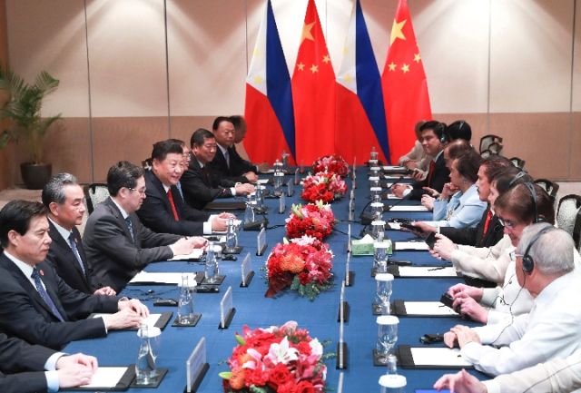 11月21日,國家主席習(xí)近平在馬尼拉會見菲律賓眾議長阿羅約和參議長索托。新華社記者 龐興雷 攝