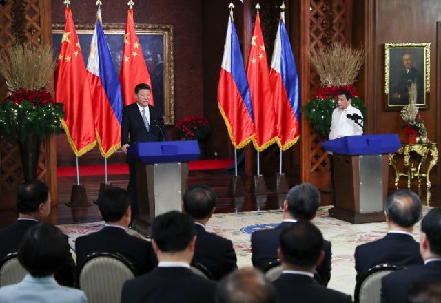 11月20日,國(guó)家主席習(xí)近平在馬尼拉同菲律賓總統(tǒng)杜特爾特舉行會(huì)談。這是會(huì)談后,兩國(guó)元首共同會(huì)見(jiàn)記者。(新華社記者 謝環(huán)馳 攝)
