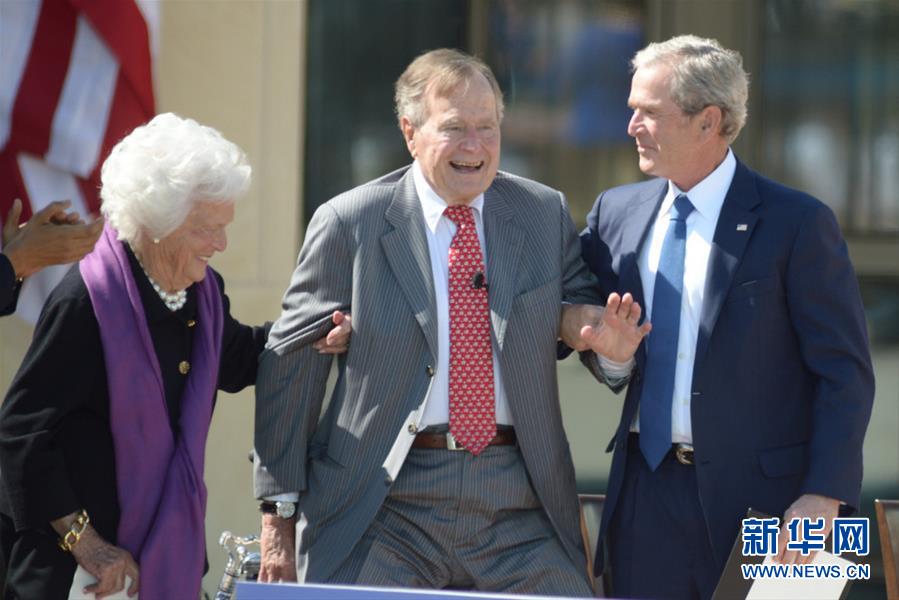 美國前總統(tǒng)喬治·赫伯特·沃克·布什辦公室11月30日晚發(fā)表聲明證實他于美國中部時間當晚10時許去世,享年94歲。這是2013年4月25日,在美國達拉斯,美國前總統(tǒng)喬治·赫伯特·沃克·布什(中)出席小布什總統(tǒng)圖書館落成典禮的資料照片。新華社發(fā)(許迅攝)