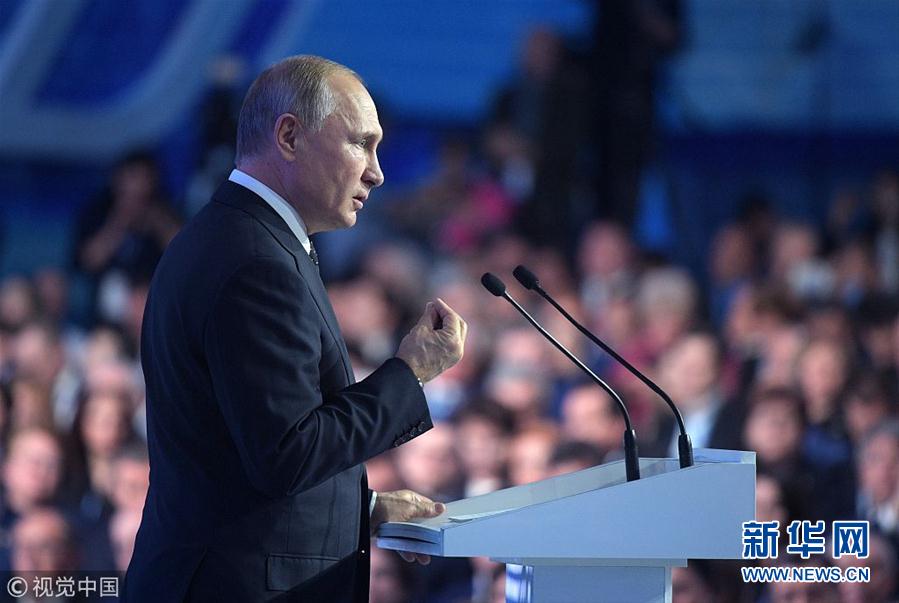 當(dāng)?shù)貢r(shí)間2018年12月8日,俄羅斯莫斯科,俄羅斯執(zhí)政黨“統(tǒng)一俄羅斯黨”年度會議舉行,俄羅斯總統(tǒng)普京和總理梅德韋杰夫出席會議。(圖片來源:視覺中國)