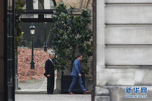 12月19日,比利時(shí)國(guó)王菲利普(左)在位于首都布魯塞爾的王宮送別前來會(huì)面的政要。新華社記者鄭煥松攝