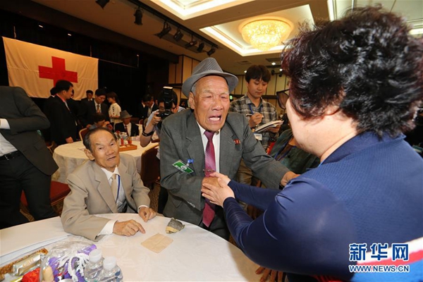 8月24日,韓朝離散家屬在朝鮮金剛山參加見面活動。第21次韓朝離散家屬團聚活動第二輪會面8月24日在朝鮮金剛山開始進行。24日至26日期間,共有81名朝方離散家屬同韓方親屬共度約12個小時的團聚時光。新華社/韓朝離散家屬團聚活動韓方聯合報道團
