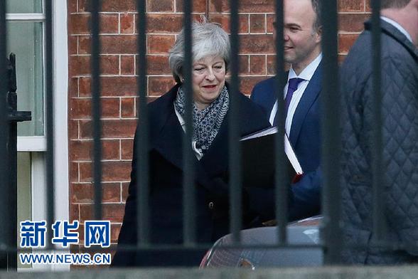 1月14日,在英國倫敦,英國首相特雷莎·梅(左)離開唐寧街10號準(zhǔn)備前往議會下院。 新華社發(fā)(蒂姆·愛爾蘭攝)