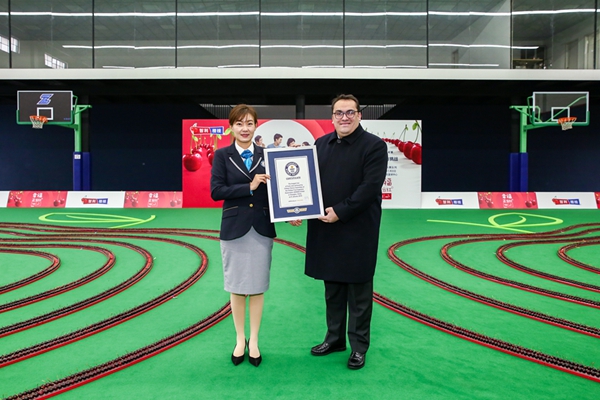 2019年1月9日,來自智利的24638個深紅色大櫻桃,漂洋過海來到中國上海,通過排列,組成了兩顆手牽手櫻桃的巨大圖案,創(chuàng)造了“最長的水果隊(duì)列”吉尼斯世界紀(jì)錄稱號。