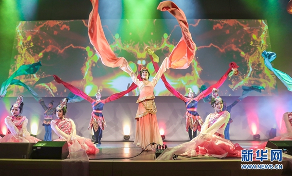 2月16日,在愛爾蘭首都都柏林,來自中國湖北省歌劇舞劇院的演員在春節(jié)聯(lián)歡晚會上表演舞蹈。新華社發(fā)