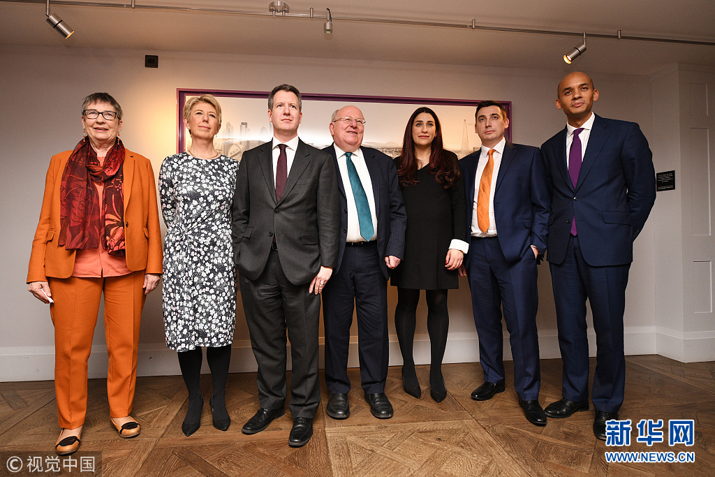 當(dāng)?shù)貢r(shí)間2019年2月18日,英國(guó)倫敦,英國(guó)反對(duì)黨工黨的7名議員宣布從工黨辭職,他們將組成一個(gè)新的國(guó)會(huì)議員獨(dú)立團(tuán)體,以抗議該黨對(duì)英國(guó)“脫歐”的支持,以及未能根除反猶太主義。(圖片來源:視覺中國(guó))