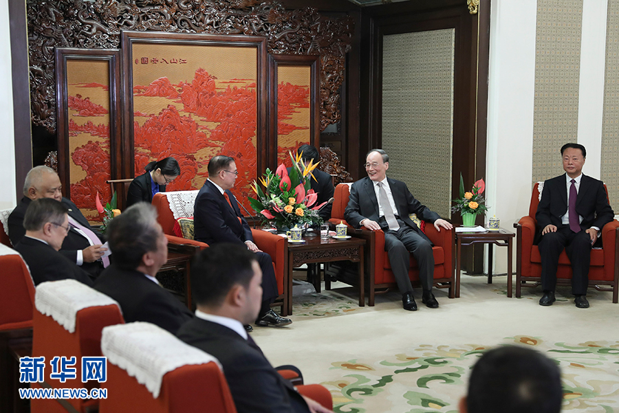 3月19日,國家副主席王岐山在北京中南海會見由外長洛欽、執(zhí)行部長梅迪亞爾德亞、財(cái)長多明格斯等組成的菲律賓政府代表團(tuán)。 新華社記者 丁海濤 攝