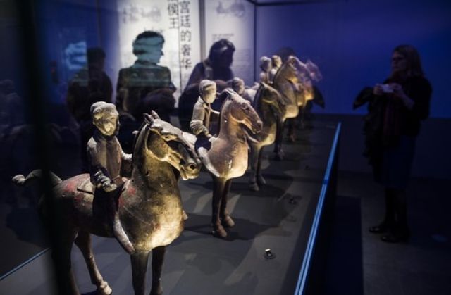 2014年10月21日,在法國(guó)巴黎,觀眾在“漢風(fēng)-中國(guó)漢代文物展”上參觀。新華社記者陳曉偉攝