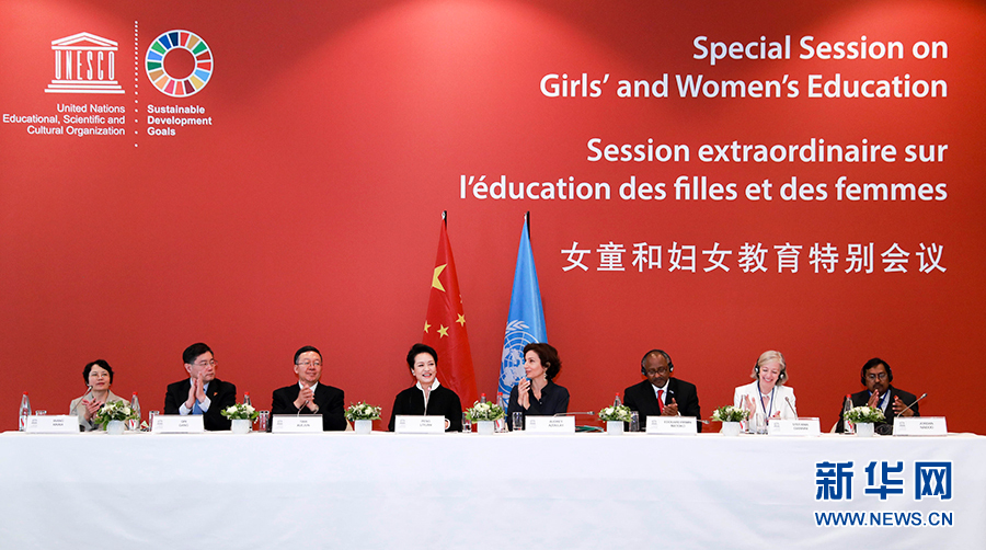 聯(lián)合國教科文組織總干事阿祖萊表示,目前世界上有近1億3千萬失學(xué)女童,全球7億5千萬文盲者中,女性占2/3。促進女童和婦女教育是聯(lián)合國2030年可持續(xù)發(fā)展議程的重要內(nèi)容,也是聯(lián)合國教科文組織的重點工作。該組織高度評價中國在這方面取得的非凡成就,感謝彭麗媛教授做出的突出貢獻。
