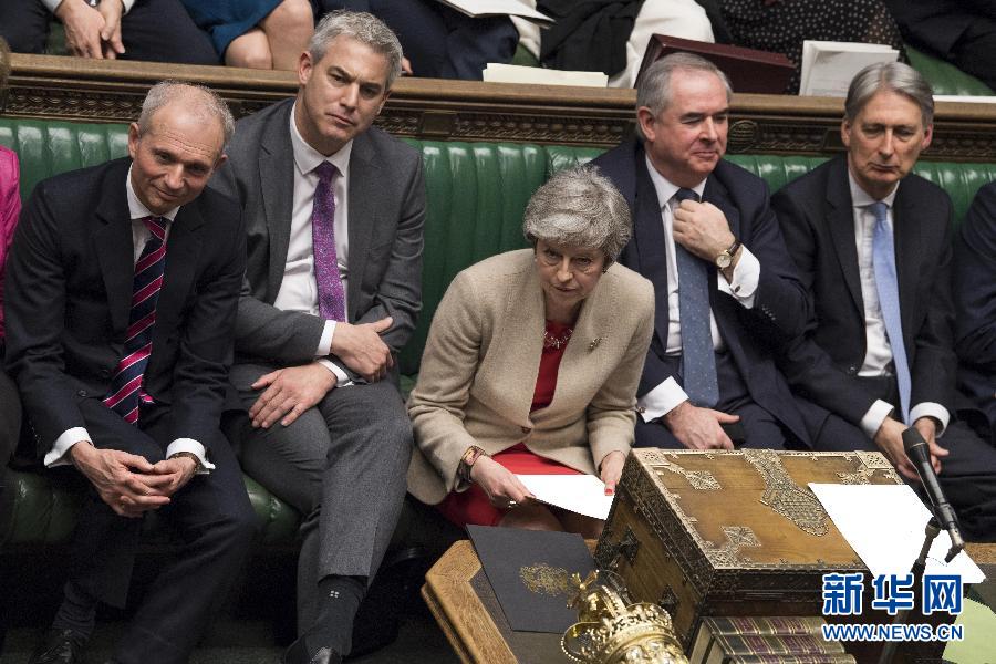 3月29日,在英國倫敦,英國首相特雷莎·梅(中)出席議會下院辯論。 新華社發(fā)(英國議會攝影師馬克·達(dá)菲攝)
