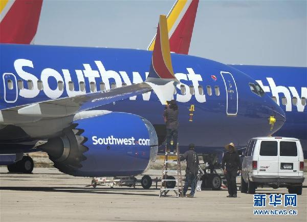 3月27日,在位于美國(guó)加利福尼亞州維克托維爾的南加利福尼亞物流機(jī)場(chǎng),工作人員檢查美國(guó)西南航空公司的波音737 MAX 8型號(hào)飛機(jī)。美國(guó)波音公司27日發(fā)布公告,介紹了737MAX系列飛機(jī)軟件更新情況和對(duì)飛行員培訓(xùn)的新內(nèi)容。 新華社發(fā)(趙漢榮攝)