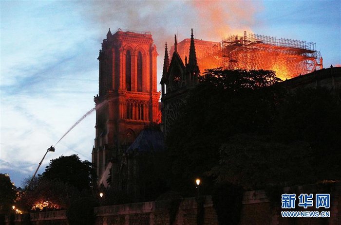4月15日,在法國巴黎,巴黎圣母院燃起大火。位于法國首都的巴黎圣母院15日傍晚發(fā)生大火,造成巴黎圣母院塔尖倒塌,建筑損毀嚴重。目前尚無人員傷亡的報告。新華社記者 高靜 攝