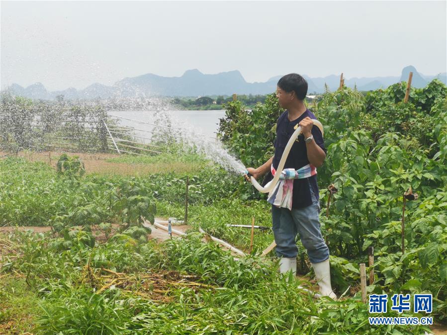 5月8日,在泰國(guó)那空拍儂府,那龍猜在湄公河畔自家農(nóng)田里澆水。58歲的那龍猜是泰國(guó)那空拍儂府湄公河游船上的志愿解說(shuō)員。新華社記者郭鑫惠攝
