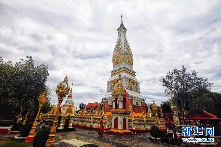 這是5月9日在泰國(guó)那空拍儂府拍攝的老撾風(fēng)格的巴儂舍利塔。新華社記者郭鑫惠攝