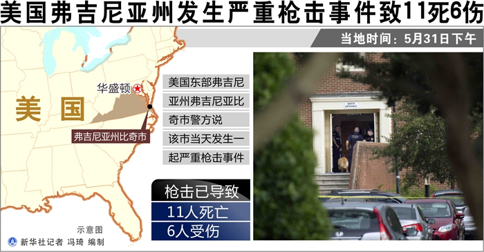 新華社華盛頓5月31日電(記者孫丁 徐劍梅)美國東部弗吉尼亞州弗吉尼亞比奇市警方5月31日通報(bào)說,該市當(dāng)天下午發(fā)生一起嚴(yán)重槍擊事件,已造成11人死亡、6人受傷。