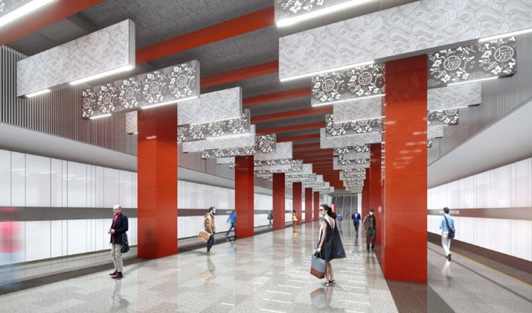 值得一提的是,米丘林大街站未來(lái)將以“中國(guó)風(fēng)”形象亮相。屆時(shí),梅花、云紋、團(tuán)壽、八仙紋、中國(guó)紅等元素將為“最美地下宮殿”添一筆中國(guó)色彩。