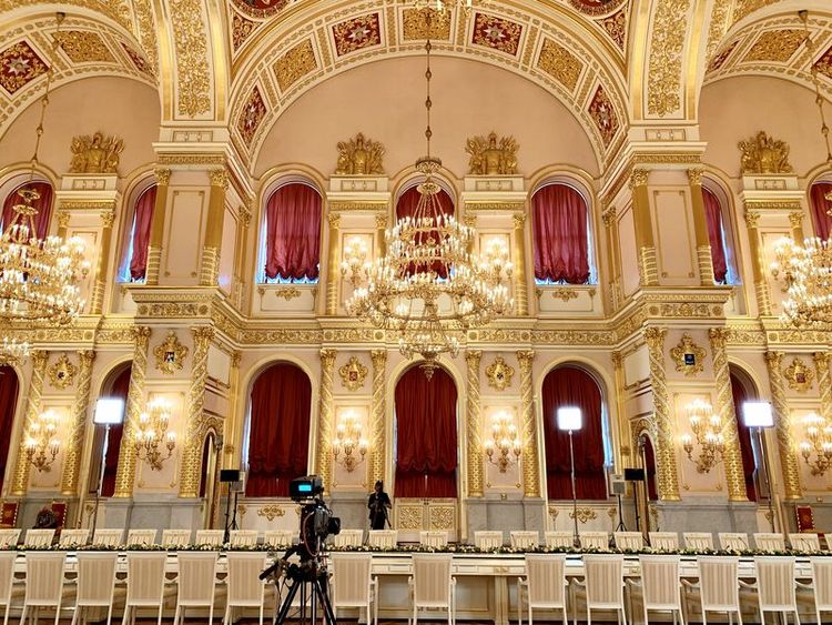 這是克里姆林宮亞歷山大廳,中俄兩國(guó)元首大范圍會(huì)談在這里舉行。新華社記者丁林?jǐn)z