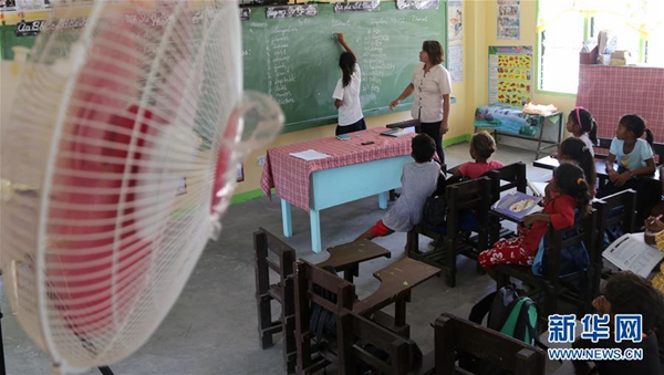 菲律賓中小學(xué)6月開(kāi)始新學(xué)年。坐在明亮涼爽的教室中,巴利瓦特小學(xué)的孩子們十分興奮?!艾F(xiàn)在有了電燈、電風(fēng)扇,孩子們終于不用渾身濕漉漉地趴在書(shū)桌上費(fèi)力讀書(shū)了?!苯處煱@荨たㄍ呒铀拐f(shuō)。