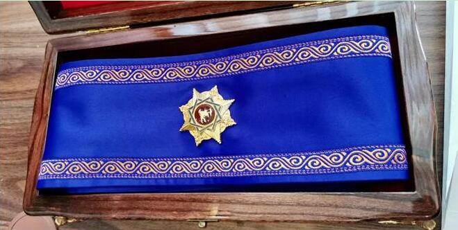 這就是授予習(xí)近平主席的勛章?!艾敿{斯”勛章是吉爾吉斯斯坦國家最高獎?wù)?,由吉爾吉斯斯坦總統(tǒng)授予,分三個等級,一級為最高等級。新華社記者 丁林 攝
