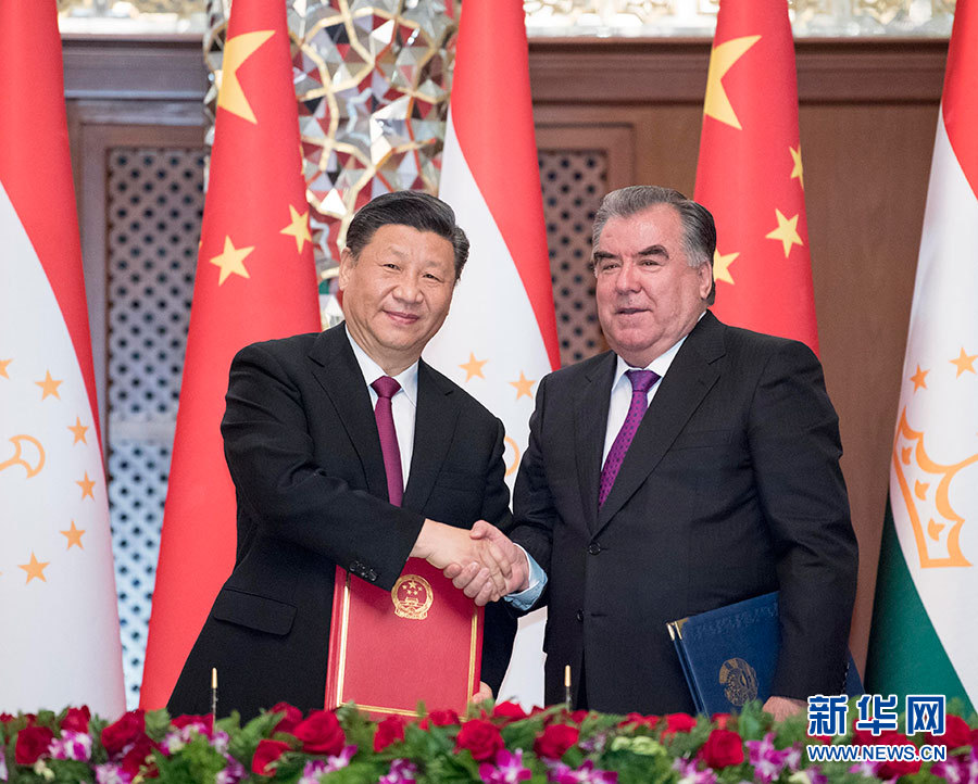 隨后,兩國(guó)元首簽署《中華人民共和國(guó)和塔吉克斯坦共和國(guó)關(guān)于進(jìn)一步深化全面戰(zhàn)略伙伴關(guān)系的聯(lián)合聲明》,并見證多項(xiàng)雙邊合作文件的交換。