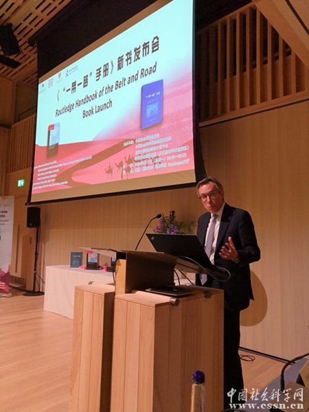 趙劍英首先對《“一帶一路”手冊》英文版的出版發(fā)行表示祝賀,作為《“一帶一路”手冊》中文版的發(fā)起者和出版方,他介紹,由中國社會科學出版社和英國羅得里奇出版社共同策劃的《“一帶一路”手冊》是全球首部以“一帶一路”倡議為主要內(nèi)容的百科讀本。這部手冊在第二屆一帶一路國際合作高峰論壇現(xiàn)場展示中獲得熱烈反響。內(nèi)容涉及“一帶一路”倡議的歷史傳承、產(chǎn)生與框架、“五路”、“五通”、六大經(jīng)濟走廊、中國特色大國外交理念、國際上相關(guān)行動計劃等11個主要部分,涵蓋近年來與“一帶一路”有關(guān)的117個詞條。這部手冊全面、完整、系統(tǒng)地展現(xiàn)“一帶一路”倡議本身及與之有關(guān)的概念和領(lǐng)域,是迄今為止一帶一路理論和實踐初步成果的階段性匯總。為促進國際社會深刻理解一帶一路偉大戰(zhàn)略構(gòu)想提供了學術(shù)引導價值。探索一帶一路的規(guī)律,建立規(guī)范型理論框架和恰逢其時,英文版的出版必然會為一帶一路匯聚廣泛的國際共識,為構(gòu)建人類命運共同體添磚加瓦。據(jù)趙劍英社長介紹,社科出版社在一帶一路研究英文譯介出版發(fā)行的基礎(chǔ)上,未來還將增進西語、葡語、阿拉伯語、俄語等一帶一路沿線語種譯介出版,為一帶一路行穩(wěn)致遠提供學理支撐。