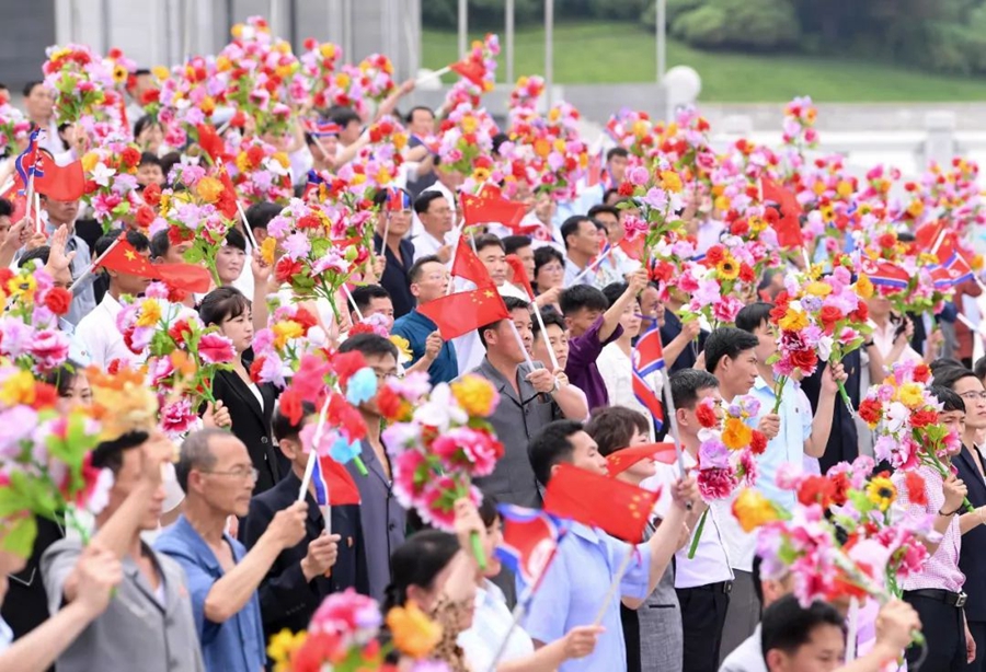 整座城市沉浸在熱情友好的氣氛之中。朝鮮最高領(lǐng)導(dǎo)人金正恩親赴機(jī)場迎接,平壤數(shù)十萬群眾沿途夾道歡迎,首次為外國領(lǐng)導(dǎo)人舉行致敬活動,習(xí)總書記在盛情之中正式開啟平壤時間。