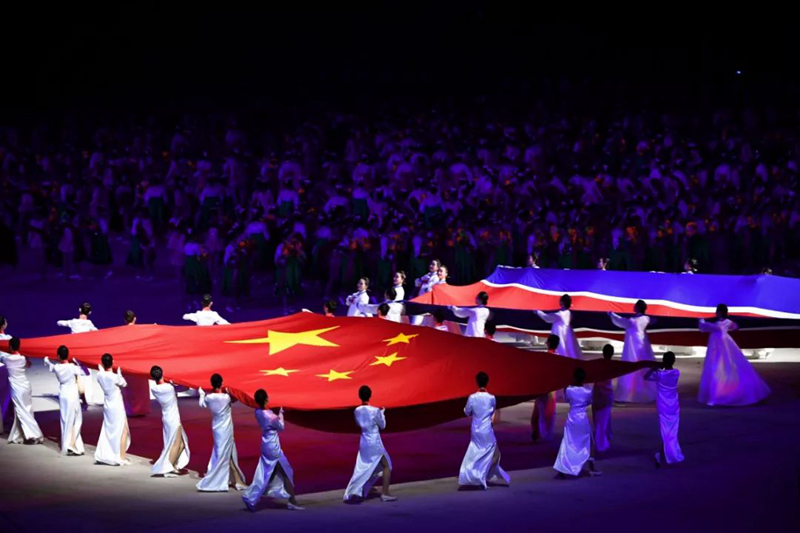 這臺(tái)演出為習(xí)近平此訪專門精心創(chuàng)作,數(shù)萬名朝鮮演員參加表演,朝鮮三大樂團(tuán)首次同臺(tái)獻(xiàn)藝,整場(chǎng)演出氣勢(shì)恢宏、震撼感人。
