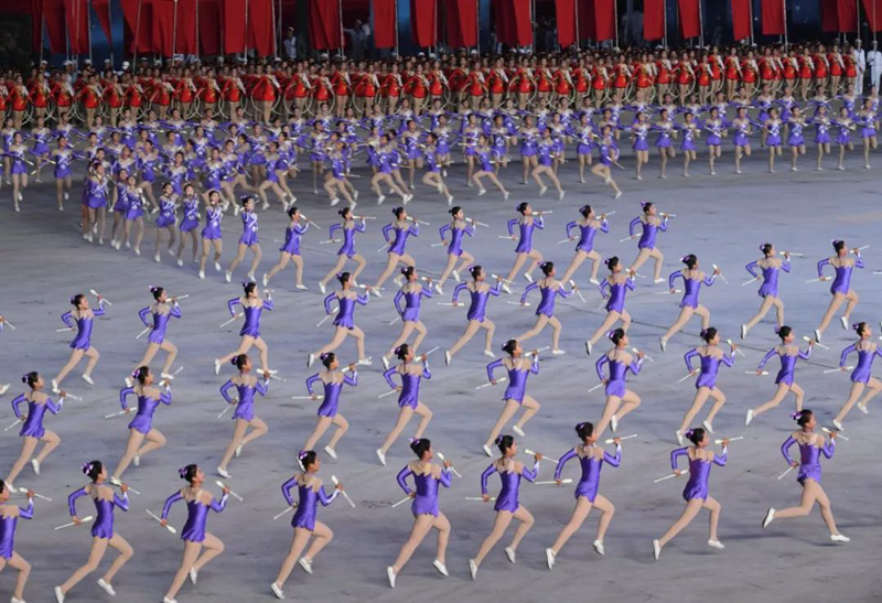 2018年9月,朝鮮為慶祝建國70周年打造了名為《輝煌的祖國》的大型團(tuán)體操和藝術(shù)演出,反映朝鮮建國以來在各領(lǐng)域取得的成就。