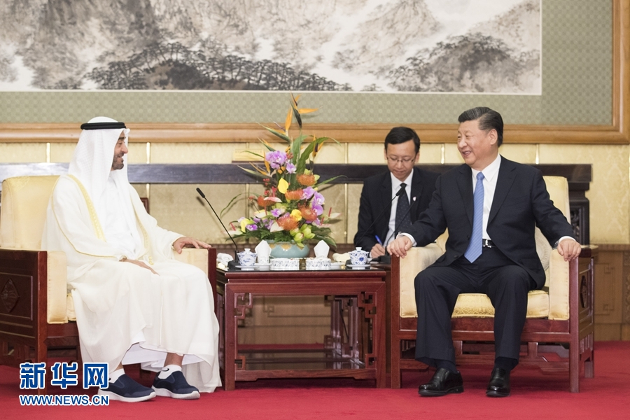 7月22日,國家主席習(xí)近平在北京釣魚臺國賓館再次會見來華進(jìn)行國事訪問的阿聯(lián)酋阿布扎比王儲穆罕默德。 新華社記者 王曄 攝