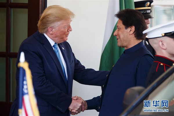 7月22日,在美國華盛頓白宮,美國總統(tǒng)特朗普(左)歡迎巴基斯坦總理伊姆蘭·汗。新華社發(fā)(沈霆 攝)
