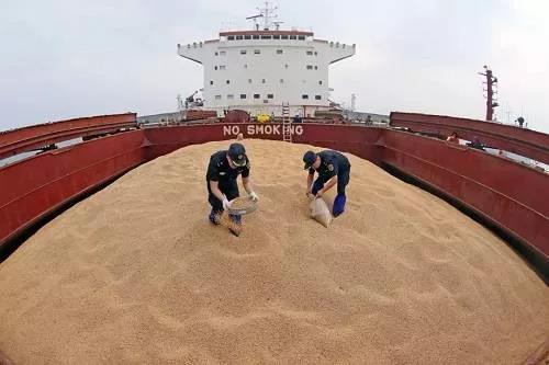 檢驗(yàn)檢疫人員對(duì)輸華大豆進(jìn)行取樣檢疫。新華社 圖
