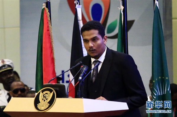 8月17日,在蘇丹喀土穆,“自由與變革聯(lián)盟”代表穆罕默德·納吉·阿薩姆在簽字儀式上發(fā)表講話。 新華社發(fā)(穆罕默德·海德爾攝)
