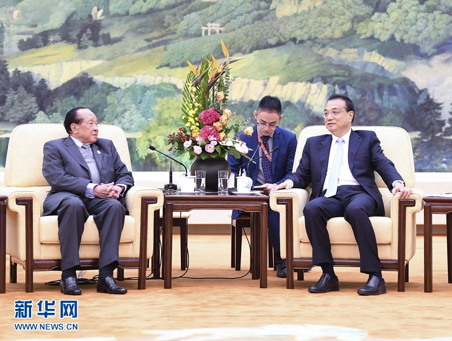 10月9日,國務(wù)院總理李克強在北京人民大會堂會見來華出席2019年中國北京世界園藝博覽會閉幕式的柬埔寨副首相賀南洪。 新華社記者 燕雁攝