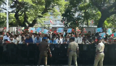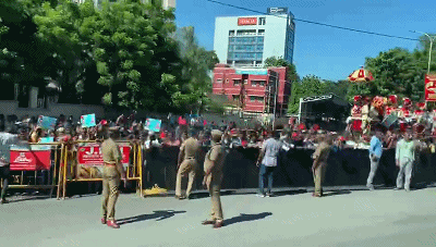 習主席的車隊駛離機場前往市區(qū)沿途,眾多當?shù)貙W生和群眾簇擁在街道兩旁,揮舞中印兩國國旗,手舉習主席和莫迪總理照片,歡呼“中印友好”,表達對習主席的熱烈歡迎。