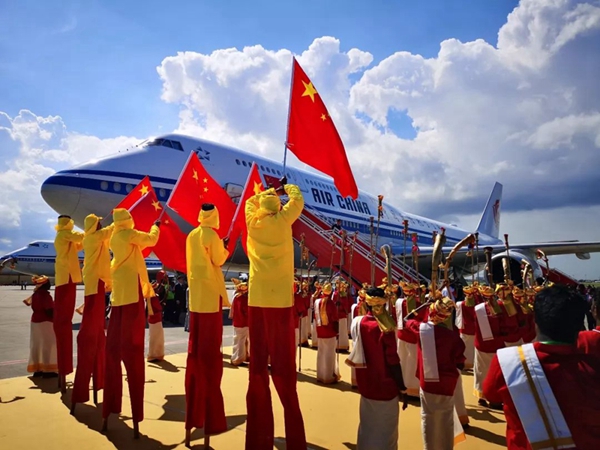 11日下午2時10分許,習主席乘坐的專機抵達金奈國際機場。