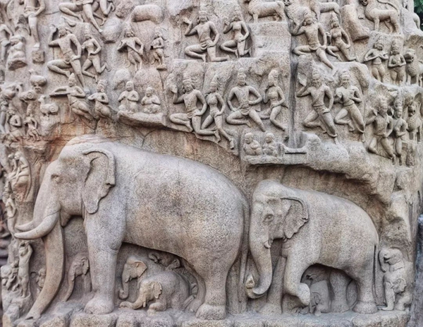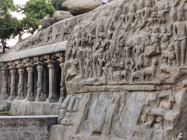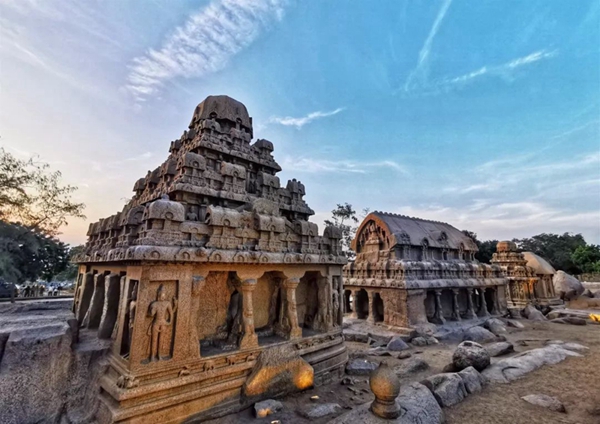 馬哈巴利普拉姆古寺廟建于公元7至8世紀,由阿周那石雕、五戰(zhàn)車神廟、海岸神廟等古跡組成。