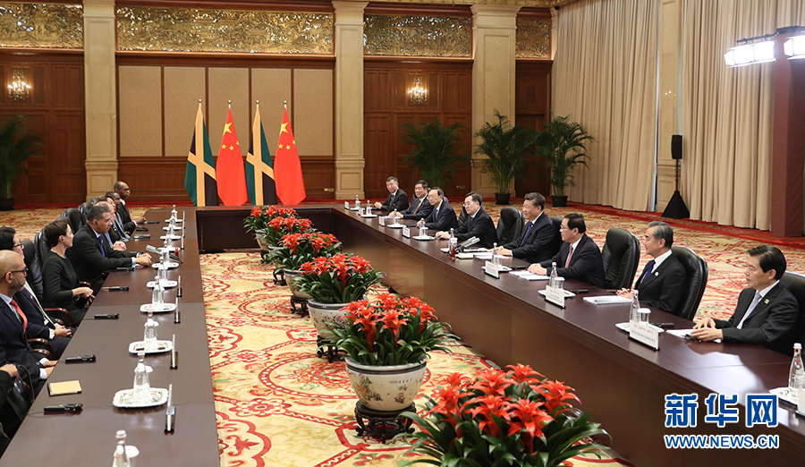 習近平強調,中牙雙方要保持高層交往,加強治國理政經驗交流,加強發(fā)展戰(zhàn)略對接,以共建“一帶一路”為契機,推動合作增速提質,密切人文交流。中方支持中國企業(yè)赴牙買加投資,歡迎更多牙買加特色優(yōu)勢產品進入中國。中方愿同牙方一道,致力于推動中國同加勒比國家關系發(fā)展,并加強在國際和多邊領域合作,共同維護多邊主義和多邊貿易體制,捍衛(wèi)發(fā)展中國家共同利益。