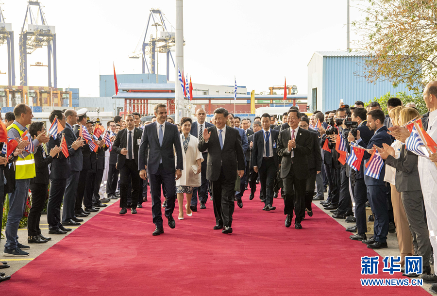 新華社雅典11月11日電(記者霍小光 駱珺 郝薇薇)當?shù)貢r間11月11日,國家主席習近平和夫人彭麗媛在希臘總理米佐塔基斯夫婦陪同下,共同參觀中遠海運比雷埃夫斯港項目。