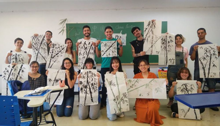巴西學(xué)生在孔子學(xué)院體驗(yàn)中國文化。巴西有10所孔子學(xué)院,是擁有孔子學(xué)院數(shù)量最多的拉美國家。