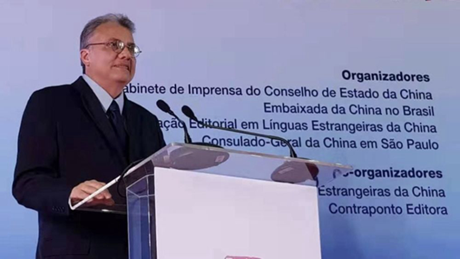 羅尼·林斯在圣保羅《習(xí)近平談治國理政》第一卷、第二卷葡文巴西版首發(fā)式上致辭。