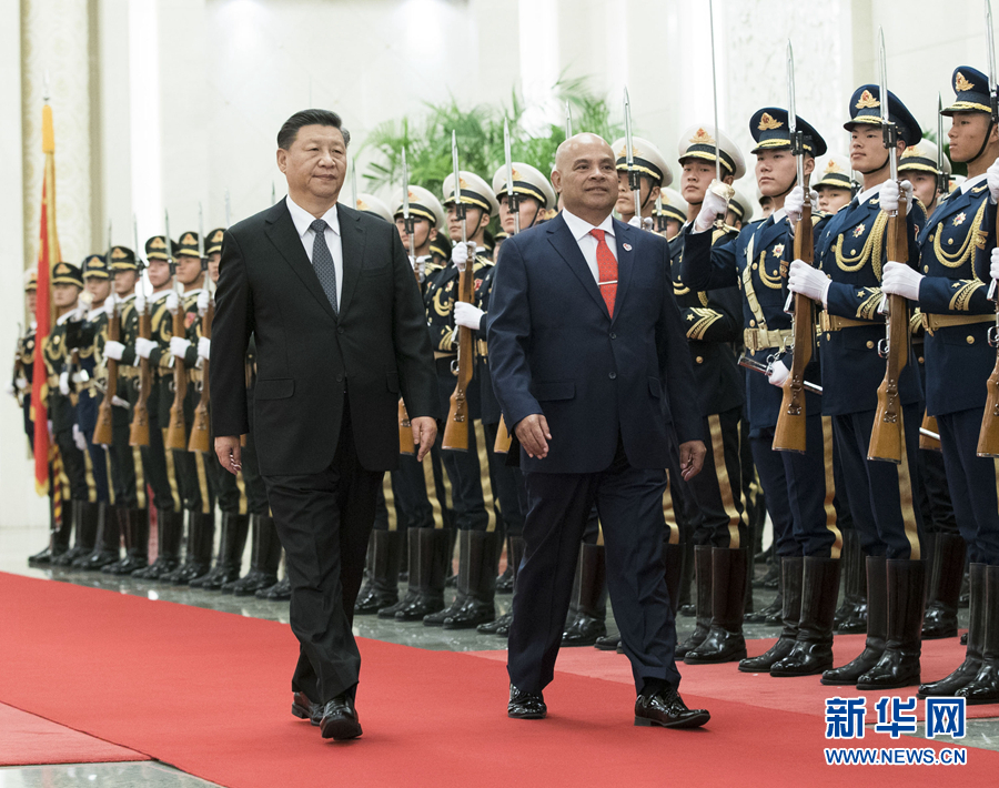 12月13日,國家主席習(xí)近平在北京人民大會堂同密克羅尼西亞聯(lián)邦總統(tǒng)帕努埃洛會談。這是會談前,習(xí)近平在人民大會堂北大廳為帕努埃洛舉行歡迎儀式。 新華社記者 王曄 攝