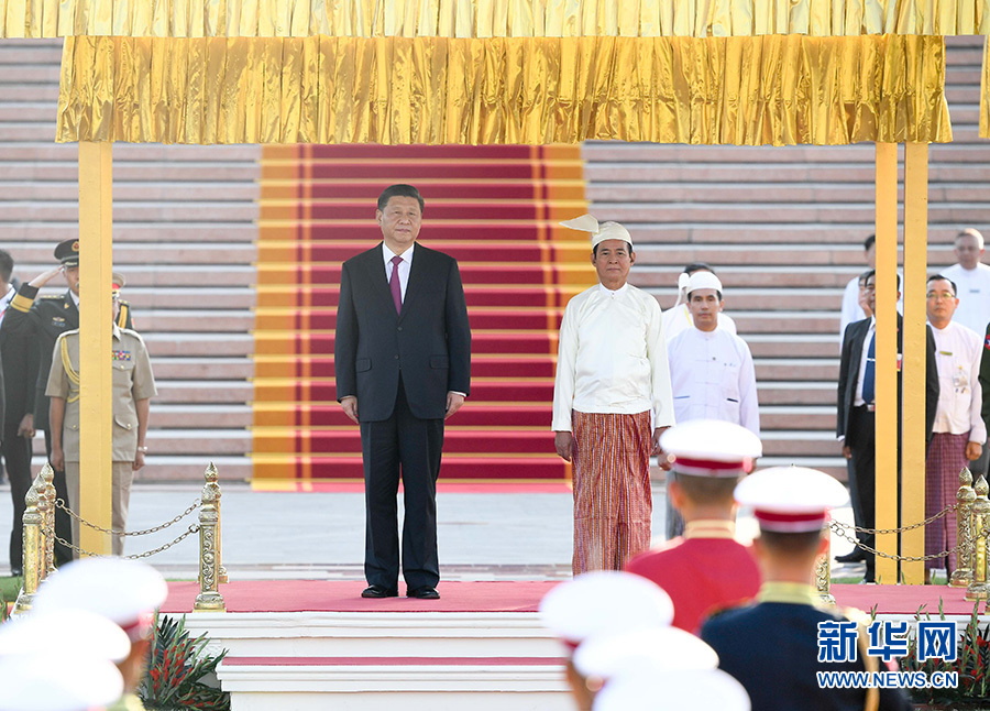 當(dāng)?shù)貢r間1月17日下午,國家主席習(xí)近平在內(nèi)比都總統(tǒng)府出席緬甸總統(tǒng)溫敏舉行的隆重歡迎儀式。 新華社記者 申宏 攝