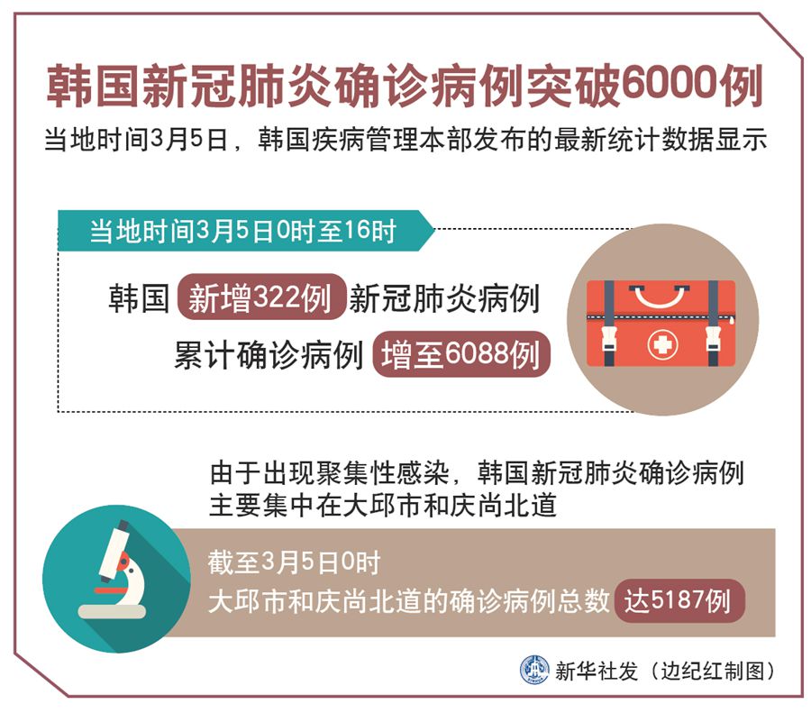 韓國(guó)新冠肺炎確診病例突破6000例-新華網(wǎng)