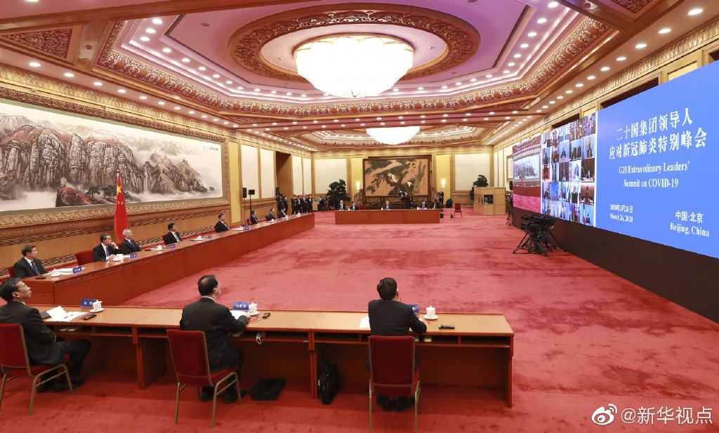 國家主席習近平26日晚在北京出席二十國集團領導人應對新冠肺炎特別峰會。習近平強調(diào),國際社會應該加緊行動起來,堅決打好新冠肺炎疫情防控全球阻擊戰(zhàn),遏制疫情蔓延勢頭。中方秉持人類命運共同體理念,愿同有關國家分享防控有益做法,開展藥物和疫苗聯(lián)合研發(fā),并向出現(xiàn)疫情擴散的國家提供力所能及的援助。?