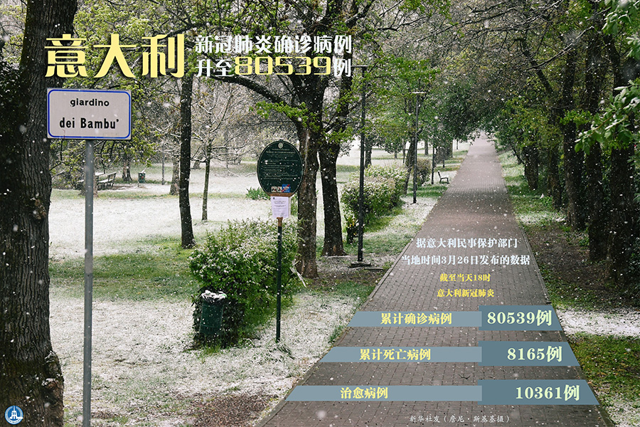 新華社羅馬3月26日電(記者李潔)據(jù)意大利民事保護部門26日發(fā)布的數(shù)據(jù),截至當(dāng)天18時,意大利累計新冠肺炎確診病例升至80539例,累計死亡病例8165例,治愈病例10361例。