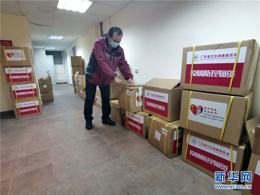 3月28日,在塞爾維亞首都貝爾格萊德的中國赴塞爾維亞抗疫醫(yī)療專家組駐地,專家組成員龍其穗整理清點物資,為第二天使用的防護(hù)用具做好準(zhǔn)備。這是他每晚必做的工作。新華社發(fā)(專家組供圖)