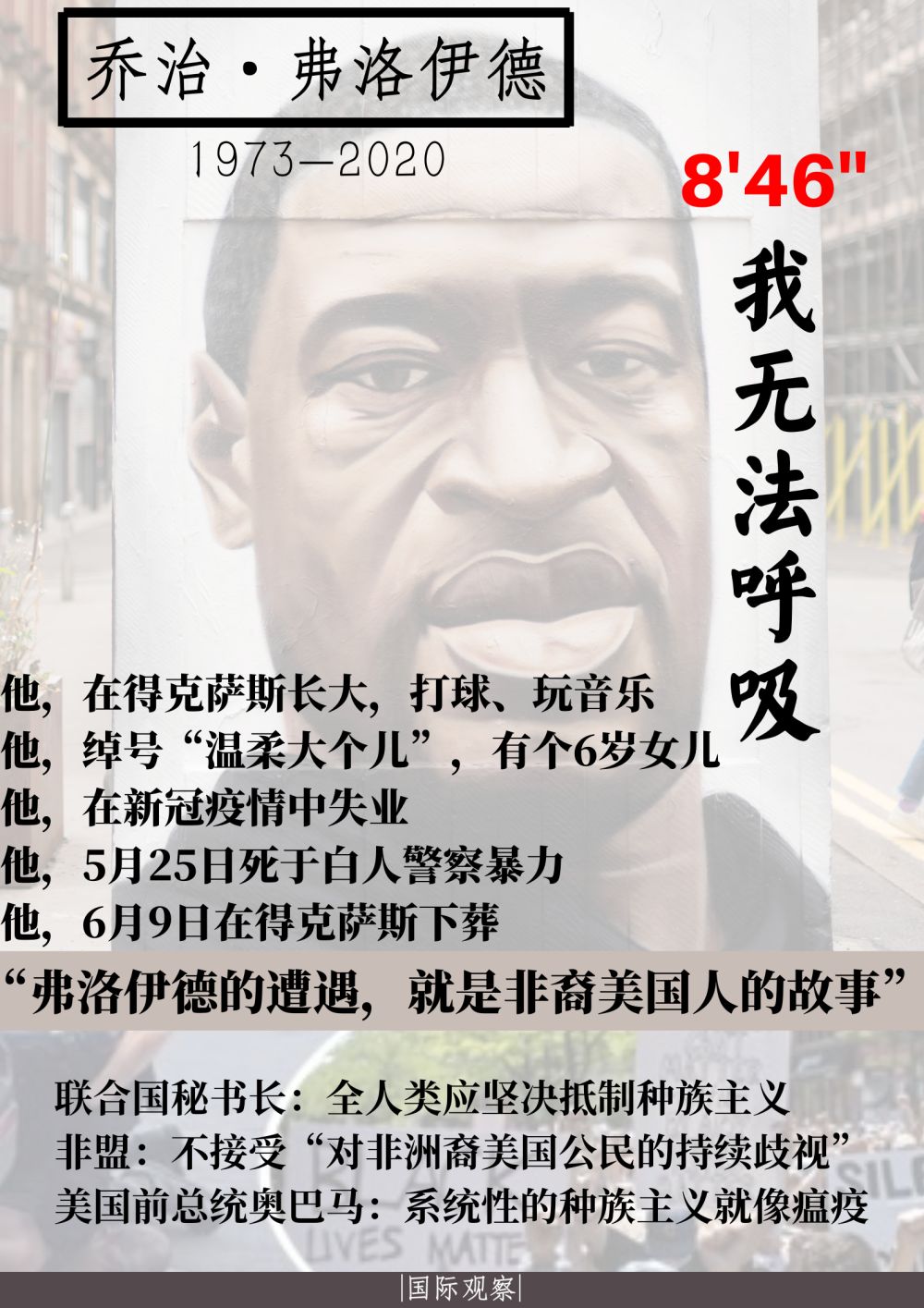 他死前“我無(wú)法呼吸”的懇求,在大選年和新冠疫情中,把美國(guó)帶入“痛苦時(shí)刻”,將長(zhǎng)久地載入美國(guó)當(dāng)代史。