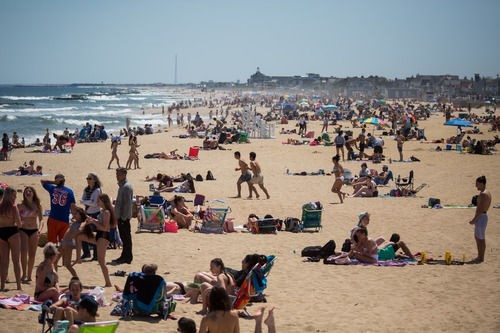 5月16日,人們?cè)诿绹?guó)新澤西州貝爾馬海灘。新華社發(fā)(郭克攝)
