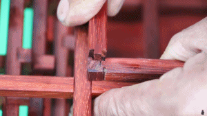 在爺爺手中,普通的木頭,不用一根釘子、一滴膠水,靠著榫與卯之間的咬合支撐,就能被打造成魯班凳、蘋果鎖、拱橋、將軍案等精致的木制品: